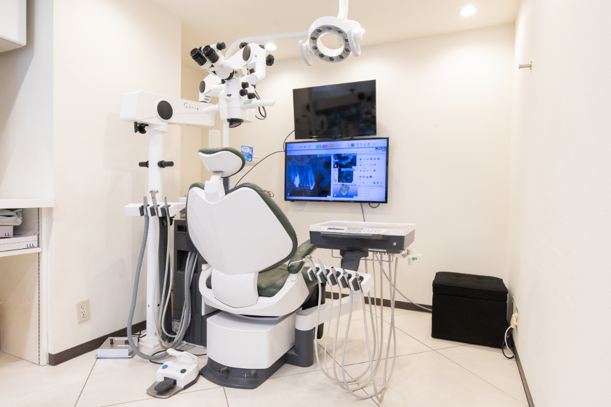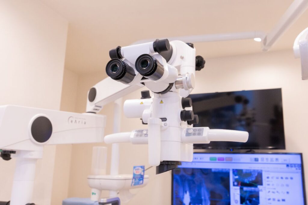 歯科用マイクロスコープは、治療部位を肉眼の数倍〜数十倍に拡大して観察できる精密機器です。細かな部分まで鮮明に確認できるため、より正確で質の高い治療が可能になります。