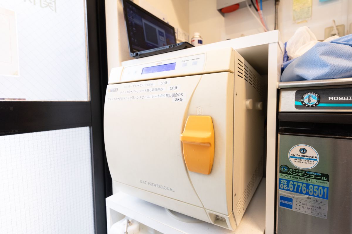 「玉造駅」から徒歩30秒の歯医者・はなぶさ歯科クリニックでは、患者さまに安心して治療を受けていただけるよう、徹底した衛生管理のもと診療を行っております。使用した医療器具は患者さまごとに専用の機器で洗浄・消毒・滅菌を徹底しているのはもちろん、紙コップやエプロンなどについても衛生面に配慮し、院内の清潔な環境維持に努めております。