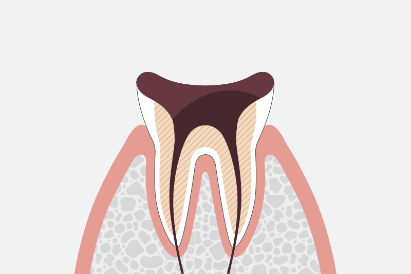 歯の大部分が崩壊し、神経が死んでしまった状態です。