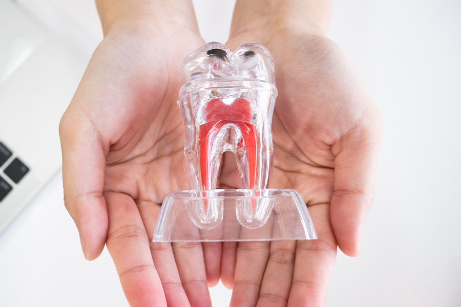 根管治療とは、虫歯や外傷などにより感染した歯の神経(歯髄)を取り除き、歯の中を清掃・消毒する治療です。